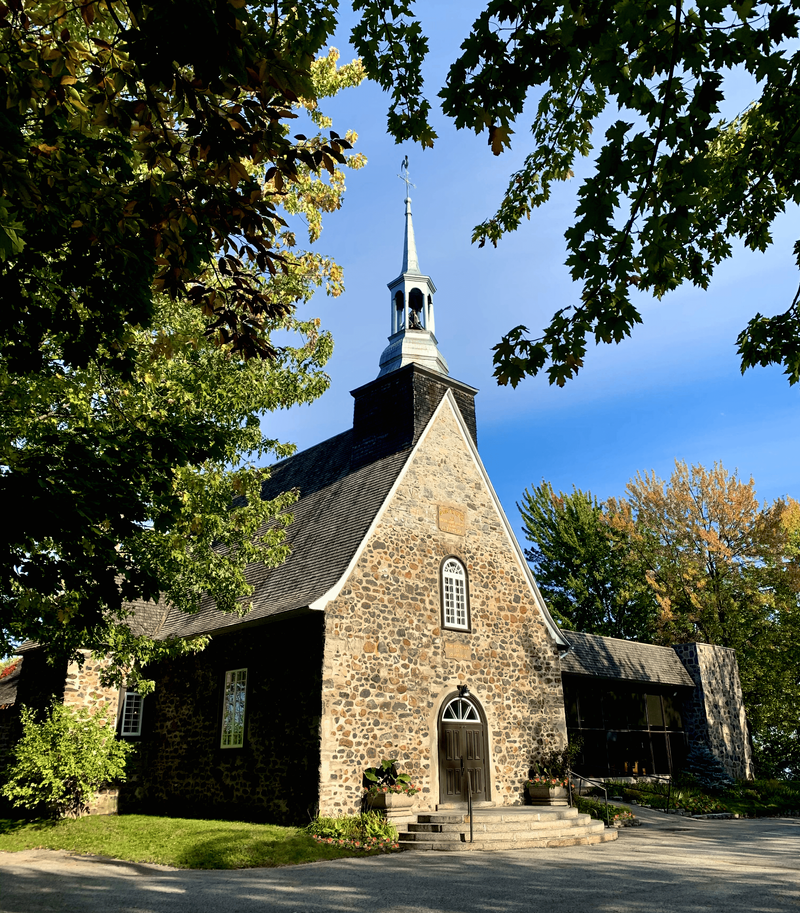 A first wooden chapel was built at Cap-de-la-Madeleine in 1659 by Pierre Boucher (1622-1717), then owner of the estate called fief Sainte-Marie. This chapel was moved to its current site in the 1660's. In 1717, the building was deemed too small, so the parishioners tore it down and began construction of a new stone place of worship. The work continued until 1720 and was completed by the carpenter François Dufaux. A new parish church was built nearby in 1879, but the stone chapel was preserved and became a sanctuary dedicated to Our Lady of the Most Holy Rosary following the wish of the parish priest Luc Désilet to consecrate it under this vocation following the realization of the miracle of the ice bridge that was used to transport the stones necessary for the construction of the new church.