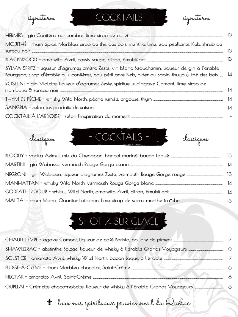 COCKTAILS À L'ARDOISE